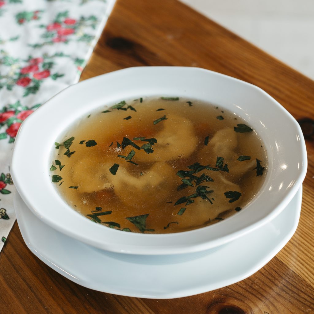 Zupa borowikowa z łazankami Barszcz z uszkami Barszcz z krokietem Barszcz solo Krokiet Rosół z domowym makaronem lub kałdunami Żurek z jajkiem Krem z pomidorów z grzankami
