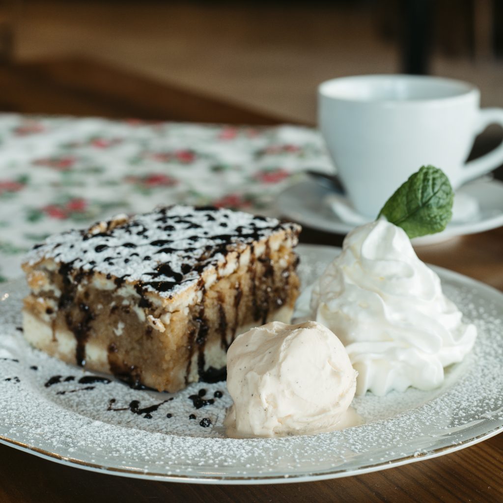 Sernik z sosem czekoladowym Szarlotka na cieło z lodami Naleśniki z serem i czekoladą Naleśniki z owocami Koktajl owocowy Kawa mrożona z gałką lodów Jabłka w cieście z żurawiną